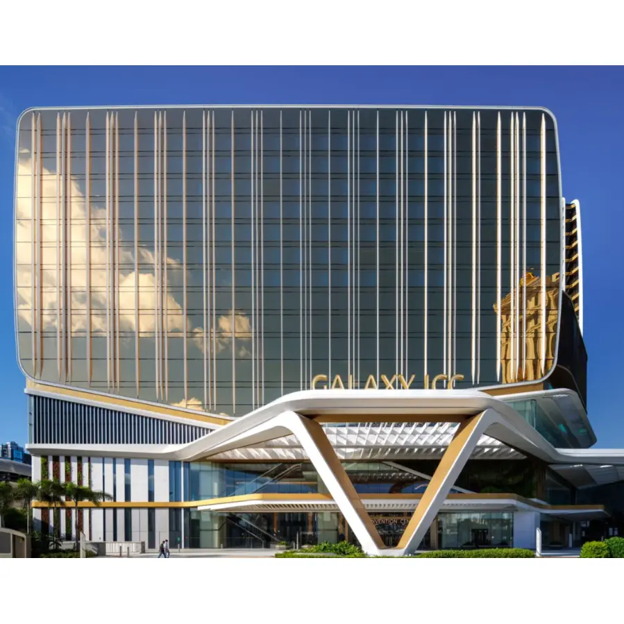 Panel Tunggal Aluminium Berbentuk Tidak Sekata menyokong pemprosesan permukaan melengkung yang kompleks, termasuk permukaan melengkung tunggal dan dua lengkung, membolehkan penciptaan fasad bangunan yang menarik secara visual. Ia juga boleh disesuaikan untuk dinding tirai dalaman berbentuk tidak sekata, menyesuaikan diri dengan lobi bersiling tinggi, reka bentuk atrium, dewan lif dan ruang dalaman lain, mengimbangi fungsi seni bina dengan reka bentuk estetik dan memecahkan batasan dinding tirai planar tradisional.
